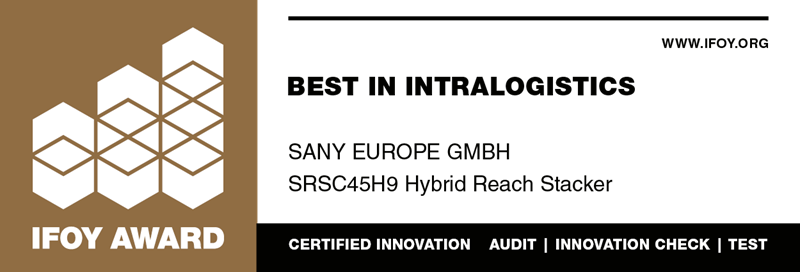 2020年7月14日,IFOY官方发布年度奖项,三一凭借SRSC45H9正面吊一举拿下年度特种车辆奖。