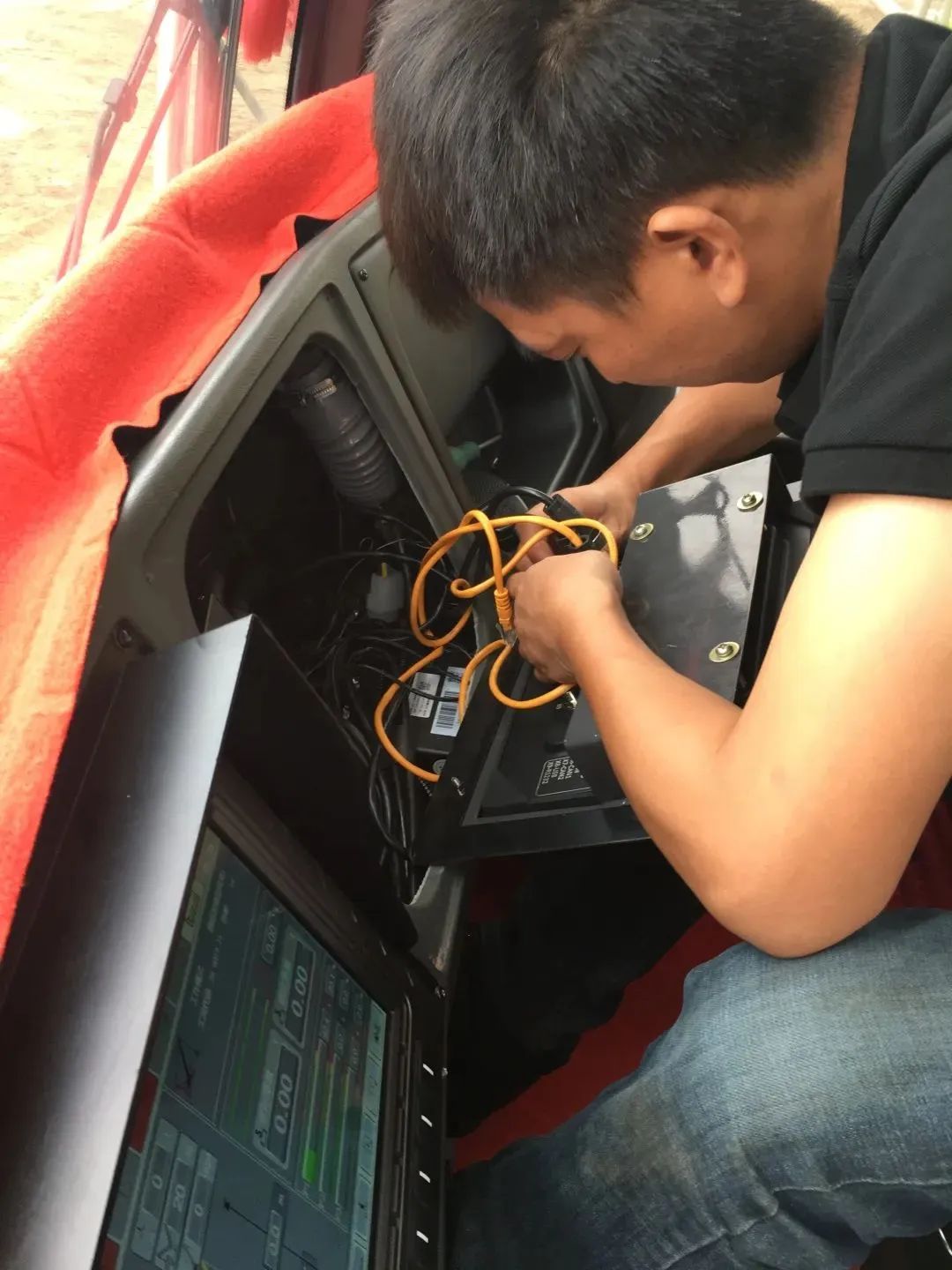 7月的内蒙古天气就像孩子的脸,说变就变,时而阳光明媚,时而风雨大作。7月11日中联重科西北区域万里行小组刚刚抵达锡林郭勒,还来不及欣赏草原的沃野千里,就被一阵大风吹得辨不清了前路。但是中联人不畏狂风或者骤雨,逆风前行来到客户的ZCC9800履带起重机旁,动作娴熟的为设备更换发动机导油管,并进行巡检。随后还手把手的给客户讲解维保知识双钩同步标定操作知识和相关实操培训。完成一切流程后,天色已经渐渐暗沉,西北区域服务万里行小组一行人却没有丝毫的休息,继续踏上他们的服务之路……7月12日上午,西北区域万里行服务小组在内蒙正蓝旗例行拜访检查一台ZCC9800后,天气再次成为他们的“路障”。原本晴好的天气,瞬间风云肆虐、暴雨倾盆。没多一会,路面积水就有几十厘米深,上坡时车轮打滑,举步维艰。越是困难的时刻,越能体现中联人不畏险阻、激流勇进的奋斗精神,中联人不怕山高,更不怕水深,在克服阻碍后他们依然用饱满的热情为客户提供最优质的服务。