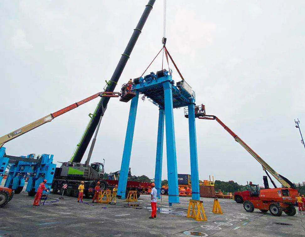 跨运车模块化调试是将跨运车化整为零,拆分成各个部件单独调试,将传统的总装再调试,变为调试再总装。这对生产和调试工作来说是颠覆性的改变,能够预先开展机电液调试工作,发现问题车间内即可解决,总装后直接运行,同时改善调试人员的工作环境。