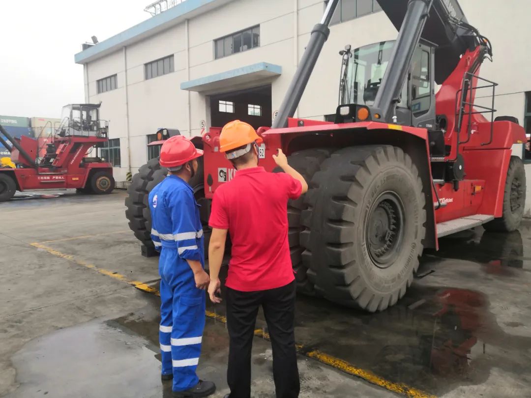 本次培训由来自卡尔玛亚洲培训中心的谢老师担任主讲,为期一天,上午为驾驶员操作培训,下午为技术维修培训。培训主要内容有卡尔玛环保正面吊节能减排介绍,如何减少驾驶员的驾驶疲劳,以及环保正面吊高效的作业方式。并针对环保正面吊的系统构造和工作原理,以及维护保养内容跟客户进行了理论和现场实践的交流。在实地演示现场,为客户详细讲解了设备的操作和维护细节,并现场为大家解疑答惑。