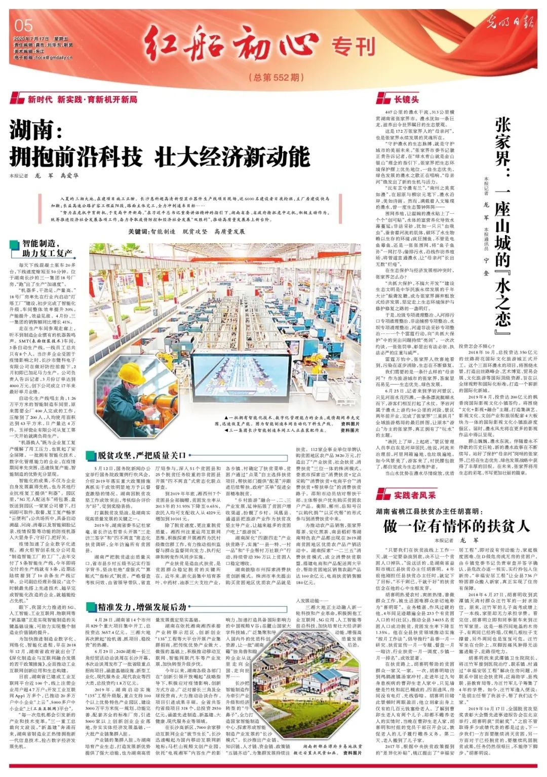 7月17日,《光明日报》刊发题为《湖南:拥抱前沿科技 壮大经济新动能》的报道,特别提到在复工复产期间,三一智能制造车间18号厂房“跑”出了生产“加速度”,每天下线混凝土泵车20多台,下线速度缩短至50分钟;智能制造车间整体效率提升30%;4月份三一集团的销售额同比增长41%......