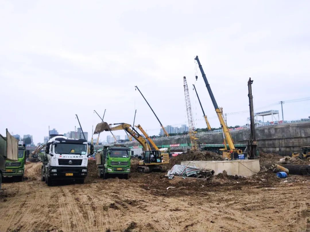 丹凤门前,一片火热的建设场面,西安火车站改扩建工程正如火如荼全力推进。20余台徐工履带起重机在此集结,作为绝对主力助力项目建设。