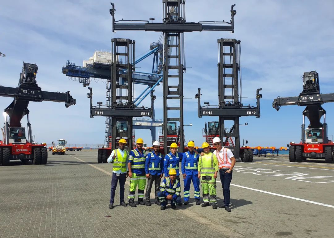 交付的设备包括1台起重能力45吨的正面吊和3台最近订购的10吨双箱堆高机,以及其他正面吊、空箱堆高机和重型叉车,用于码头装卸集装箱和货物。