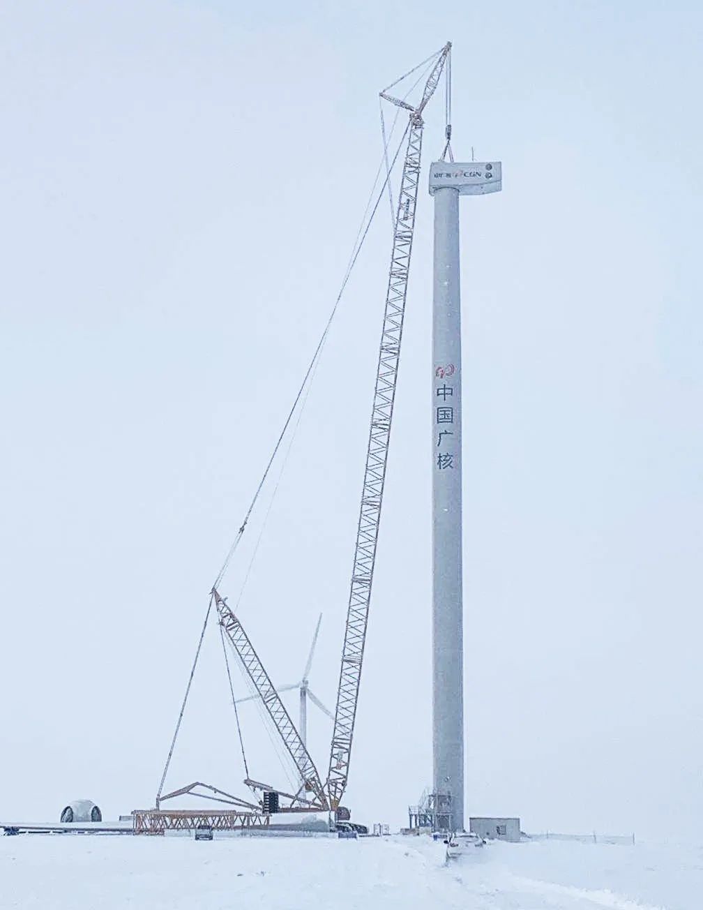 今年1月,山东菏泽某风电产业园,XGC11000完成“全球首座160米预应力抗疲劳构架式风塔机组”的吊装