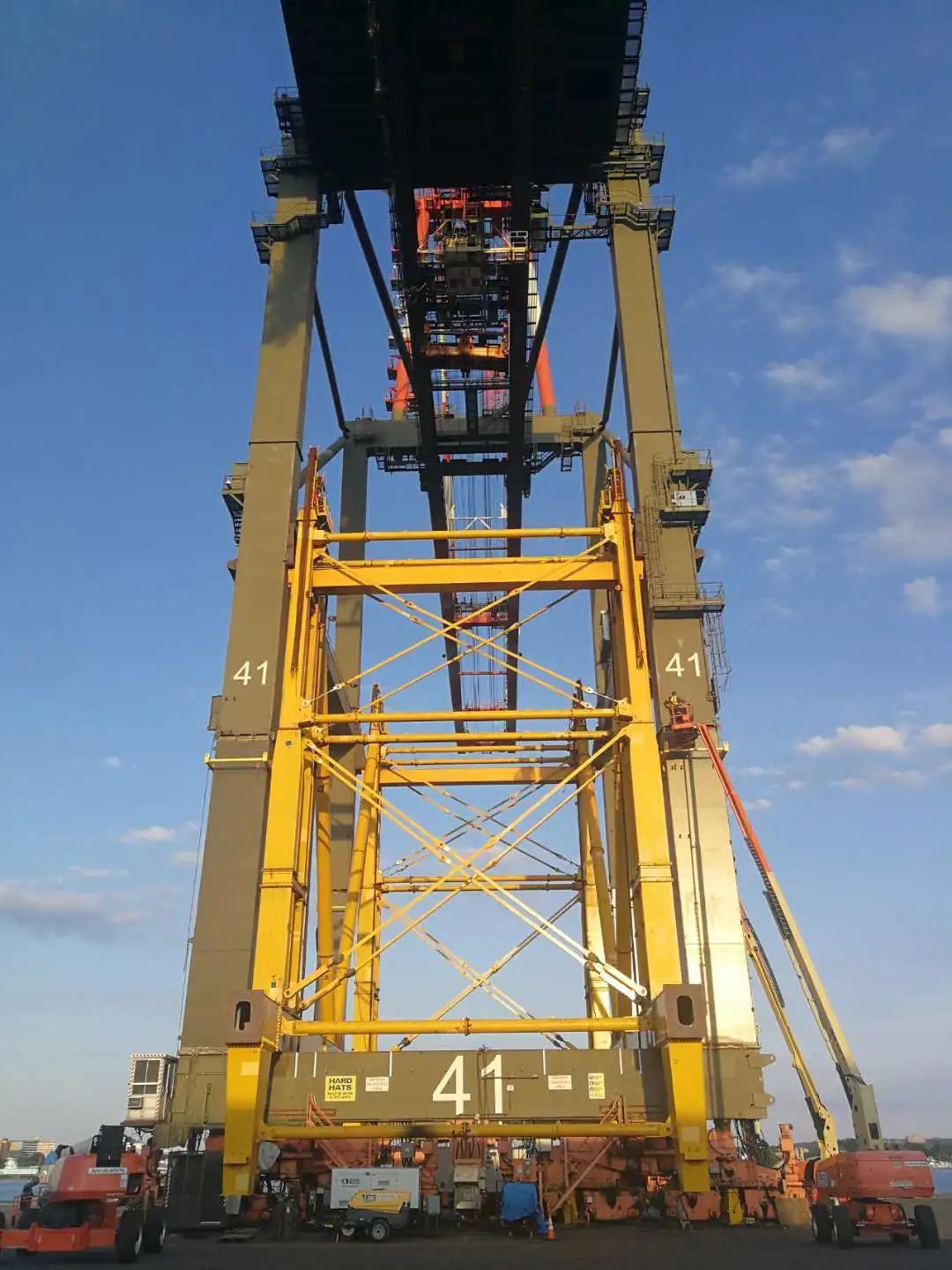 该项目在钢结构制造阶段,正值国内新冠肺炎疫情爆发,加高段的生产制造和运输受到影响,在项目团队的努力下,依然确保了首批加高段顺利发运。现场开工后不久,受到美国新冠肺炎疫情的影响,加高工作被迫停工一段时间。在这个特殊时期,振华重工的员工们逆行奔赴海外现场,通力合作推进项目,最终确保安全、高效地完成岸桥的提升。