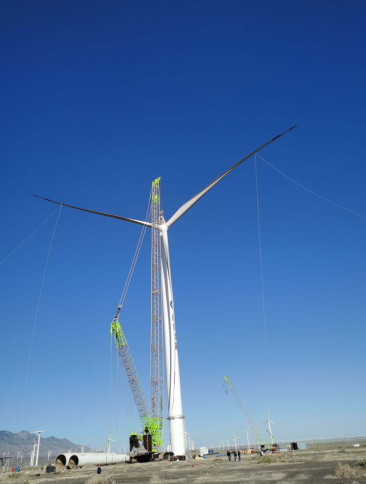 本次吊装位于有着“风城”之称的达坂城,这片位于中天山和东天山之间的谷地,是新疆风能资源最为集中的区域,也是新疆九大风区中开发建设条件最好的地区。近年来,随着清洁能源发展的壮大,达坂城以丰富的风力资源受到了风电项目的重点关注,一座座风力发电塔拔地而起鳞次栉比,成为了达坂城壮丽的风景线。