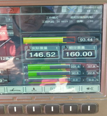 明阳智能MySE5.2-166型5.2MW风机平台机组是针对内蒙古、新疆等中高风速区域研发的产品,该平台机型运用了先进的齿轮箱传动技术,在保证齿轮箱整体尺寸和MySE4.0MW齿轮箱基本相当的前提下,使其功率密度大幅提升,效率更加优异,是目前陆上风电5MW风机中的佼佼者。此次5.2MW风机吊装任务,中联重科ZCC9800采用了120+7米的风电工况,主机机舱吊载重量146.52吨,是名副其实的“扛鼎之吊”。面对如此艰巨的吊装任务,中联重科ZCC9800用其卓越的起重性能,优秀的作业稳定性交出了一份令人满意的答卷。