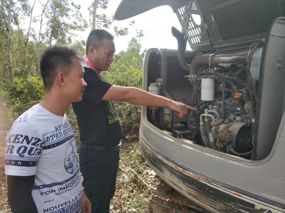7月15日,中联重科土方机械服务万里行小队来到了广西百色,作为广西站的第一位客户,百色温老板第一眼就透着一股“亲近感”,越走近越觉得其“爽朗不拘细行”。当年与中联重科的初次合作,没有多少迟疑,温老板一次性便购买了两台ZE60-10设备,自己既当老板,也当机手。在施工现场,服务工程师为温老板的设备进行细致的四轮一带检查,示范油水分离器放水,检修空调,更换空调滤芯,清洗散热网、驾驶室等。趁着做保养的空档,中联重科的工程师现场与温老板讨论挖掘机日常保养注意事项。