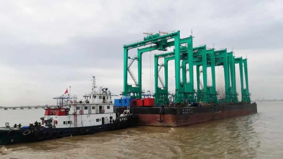 7月31日,振华重工为上港宜东码头用户建造的5台全功率锂电池节能轮胎吊从南通分公司顺利发运。