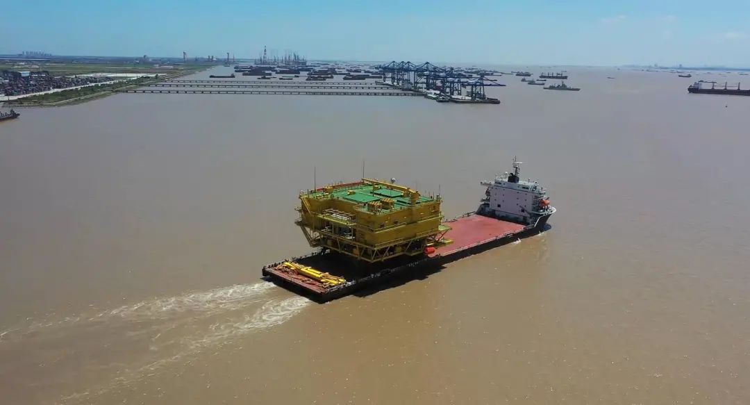 8月3日,振华重工为广东省打造的珠海金湾海上升压站顺利离开南通振华重装码头,前往珠海市三灶岛南侧海域海上风场完成上部平台吊装、焊接和灌浆及最终联调。