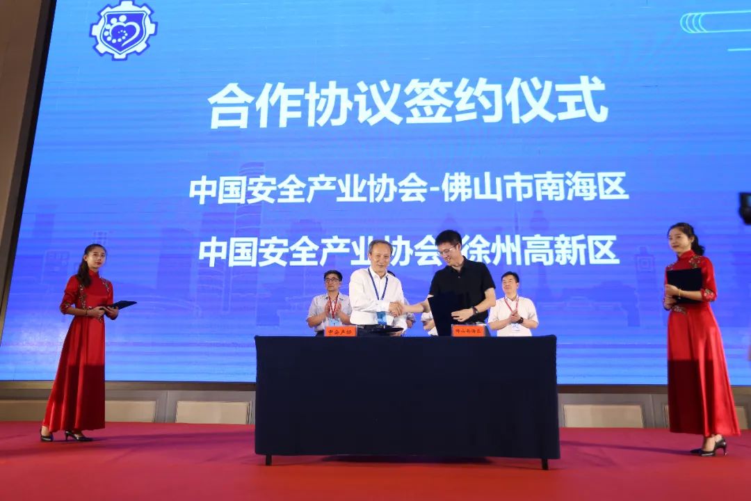 会上,中国安全产业协会与佛山市南海区、徐州市高新区签署了合作协议。中国安全产业协会与南海区人民政府将围绕资源共享、项目落地、共同推进中国安全产业大会等方面开展全方位深度合作。协会与徐州高新区将继续在包括中国安全及应急技术装备博览会等大型活动中紧密合作,共同促进徐州安全产业的发展。