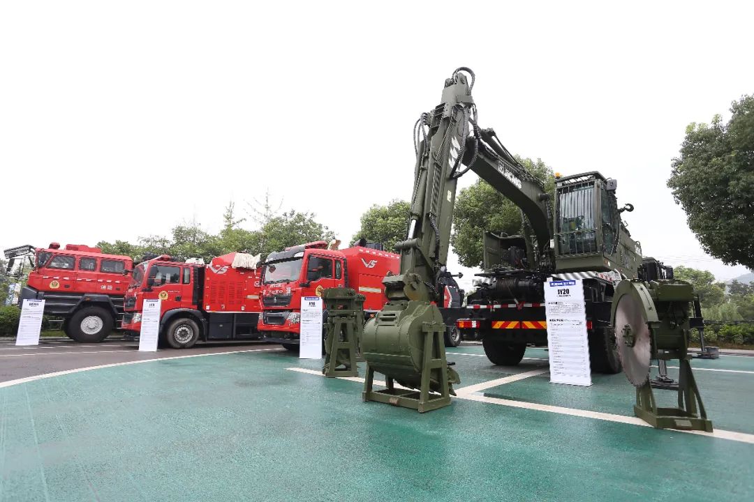 会场外,徐工各类应急抢险救援装备依次陈列