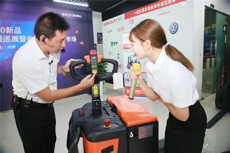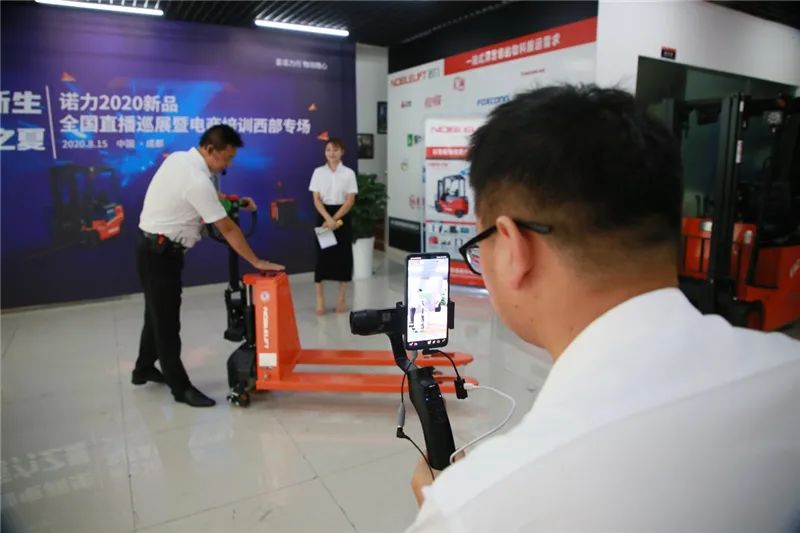 经过2020年上半年在工业车辆行业突破性的开展一系列新品直播发布活动之后,诺力在下半年启动了新产品线上线下融合的全国直播巡展。继7月30日在上海成功举办完华东区的巡展专场活动后,8月15日,“触电新生 诺力之夏” 诺力2020新品全国直播巡展暨电商培训西部专场在四川成都众鑫诺力4S店成功举行。