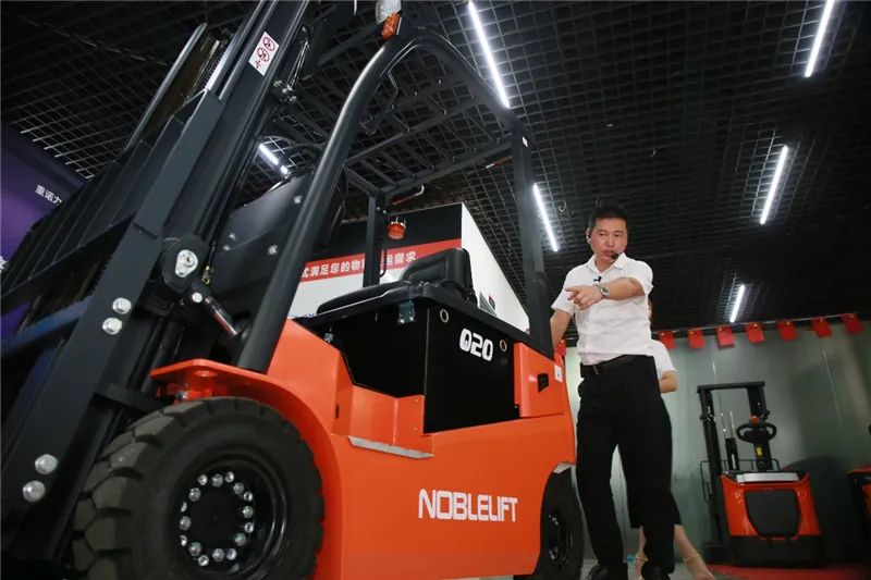 诺力大客户经理张伟兵向现场嘉宾进行诺力2020新品展示,同时针对线上观众进行全程网络直播。