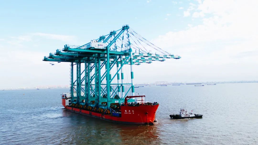 8月18日,振华重工为马来西亚丹戎帕拉帕斯港(以下简称PTP港)建造的第二批4台岸桥搭乘“振华15”轮,顺利从上海长兴岛起航。
