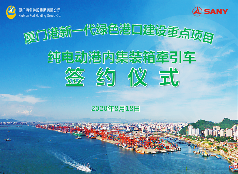 2020年8月18日,三一海工同厦门港务运输有限公司,成功签署一项35部最新研制的三一SM4252T0BEV型纯电动港口牵引车的战略合作协议,将在今年10月、12月分批交付给客户使用,助力厦门港完成新一代绿色港口建设的目标。