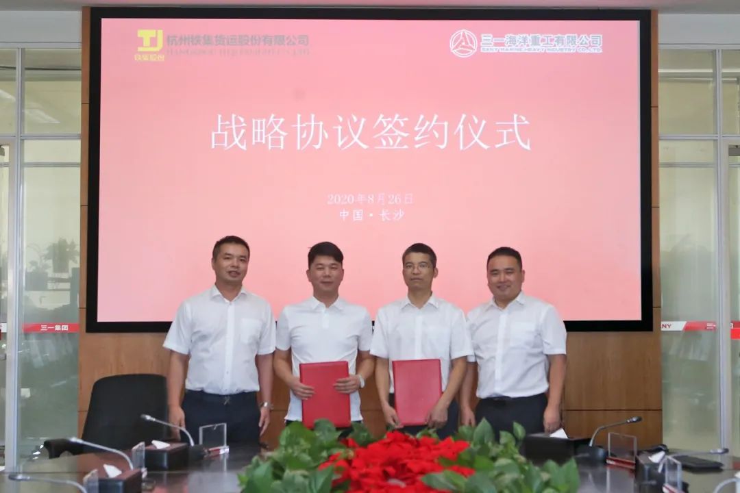 8月26日,"杭州铁集货运股份有限公司·三一海洋重工有限公司战略合作签约暨交机仪式"在长沙隆重举行。