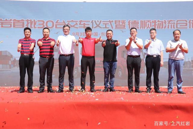 继8月初上汽依维柯红岩商用车有限公司(以下简称“上汽红岩”)在山东省东营市拿下100辆红岩杰卡港口牵引车订单后, 9月3日,首批30辆在东营广饶德顺物流园成功交付。当地政府领导、双方代表、行业嘉宾及诸多媒体参与了本次交车仪式。本次交车仪式采用线上直播与线下活动同步的方式进行。