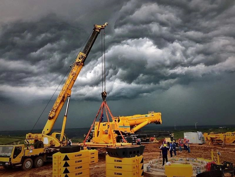 2019年12月,徐工800吨级履带起重机XGC12000完成天津“清之风”风电项目3.2MW风机安装,实现完美首秀。