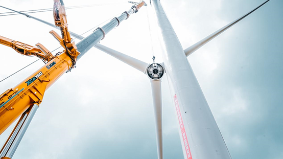 2019年5月,徐工XCA1600全地面起重机成功吊起最大直径141米的叶轮并在140米高度安装到位!刷新全地面起重机世界最高风机安装纪录。
