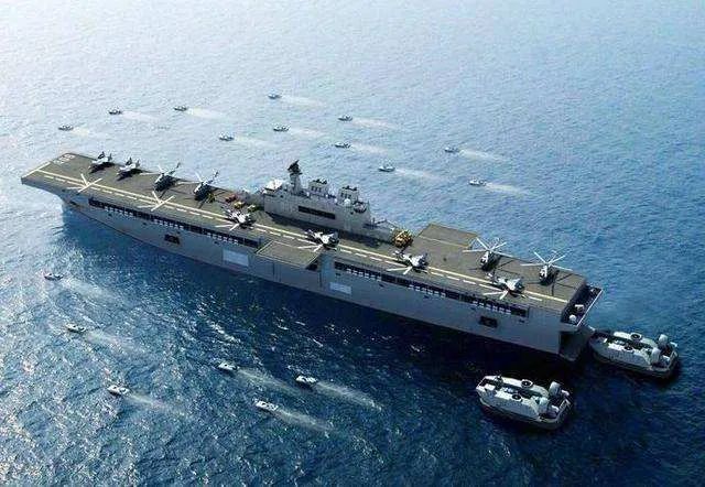 075型两栖攻击舰满载排水量4万吨,是日本出云号直升机驱逐舰的两倍,同时超过了意大利以及巴西等国家的轻型航母,其作战能力则是轻型航母的两倍,特别是在针对岛礁作战中,作用甚至堪比中型或者大型航母。