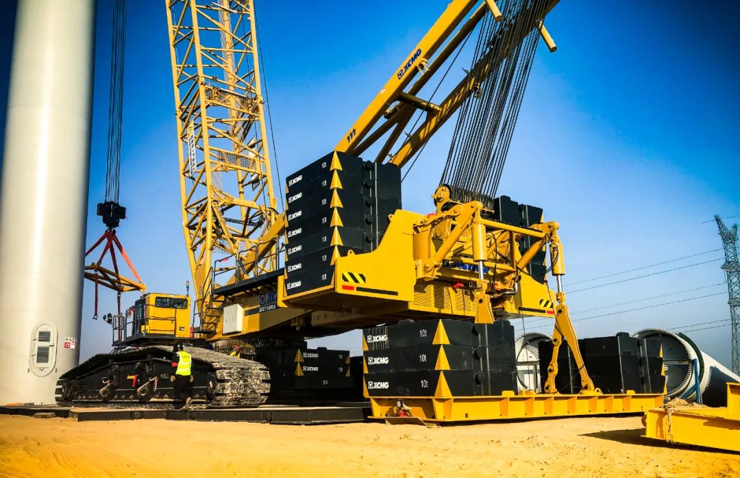 同样战力报表的XGC11000A依托智能增强配重技术,全新定义了履带起重机工况,以标准工况的配置达到了超起工况的性能,成为行业唯一一款面向吊装全行业工况的技术越级产品。目前市面上650吨级履带起重机采用标准风电工况,在吊高100米的情况下,最大吊重量165吨。拥有智能增强配重技术加持的XGC11000A,在同等条件下可实现的最大吊重量为210吨。