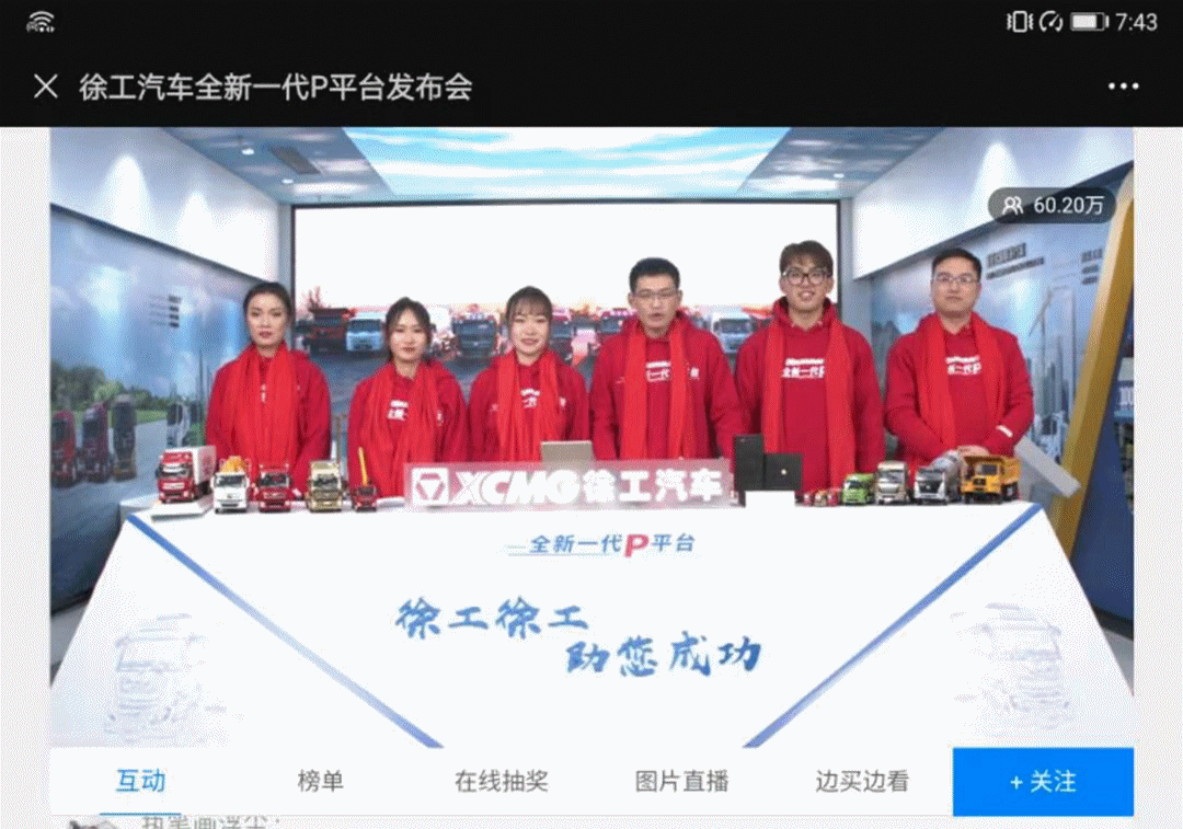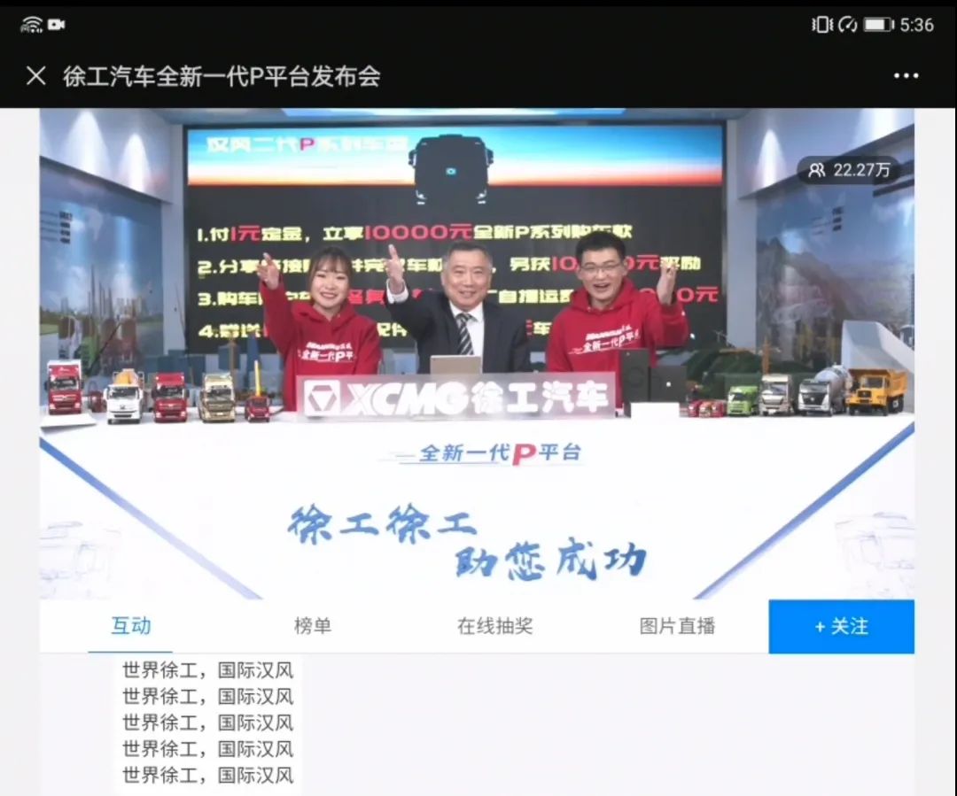 本次发布会产品新颖、体量震撼,同时创新发布模式,线下盛会同步在线上多平台直播,直播间总访问量达71.11万,成交总量1957辆,其中P系列1412辆、G5pro430马力牵引车545辆,实实在在“干了个大的”。