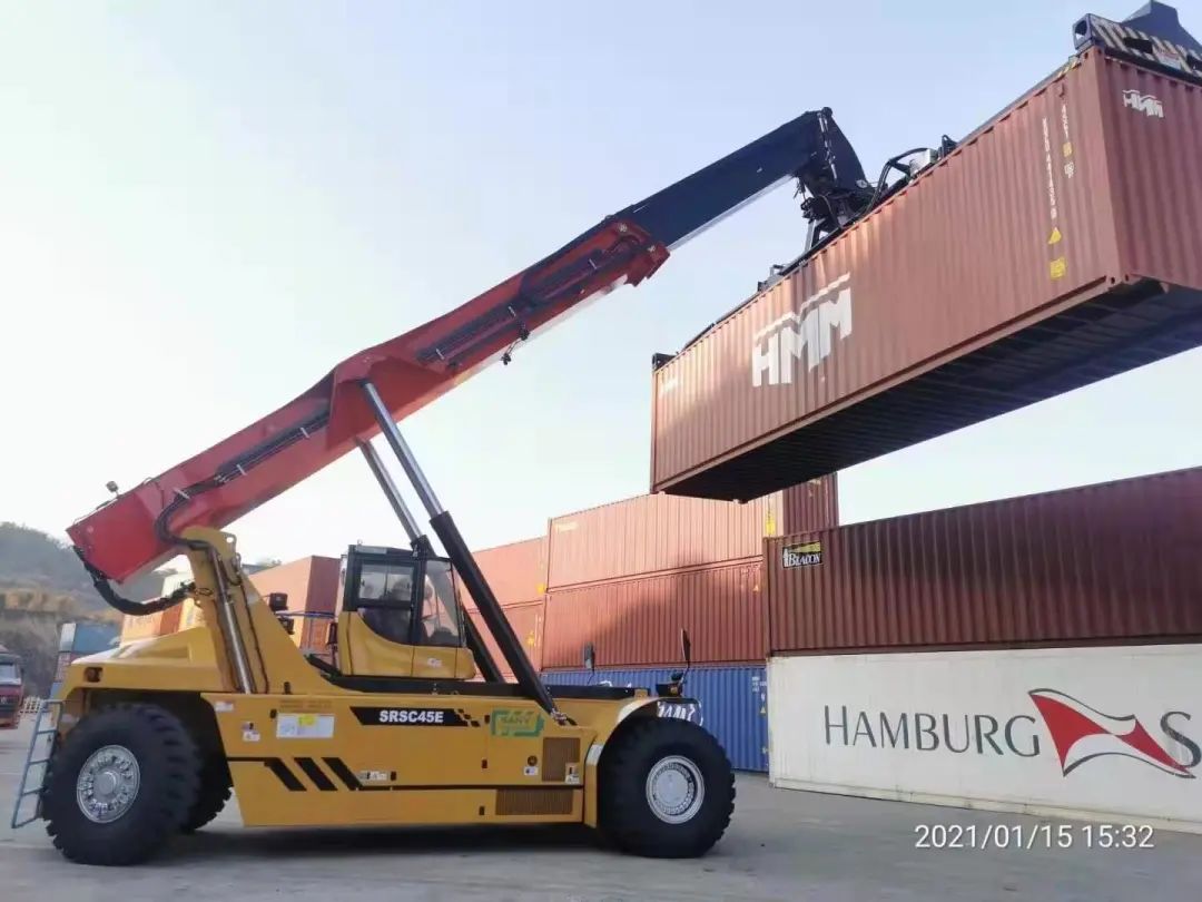 三一在国内占有65%以上的正面吊市场份额,并率先实现了电动正面吊、电动堆高机、电动港口牵引车、电动抓钢(料)机等全系列电动产品的量产和交付,2020全年交付电动产品近100台量,成为各地绿色港口码头建设的重要力量。