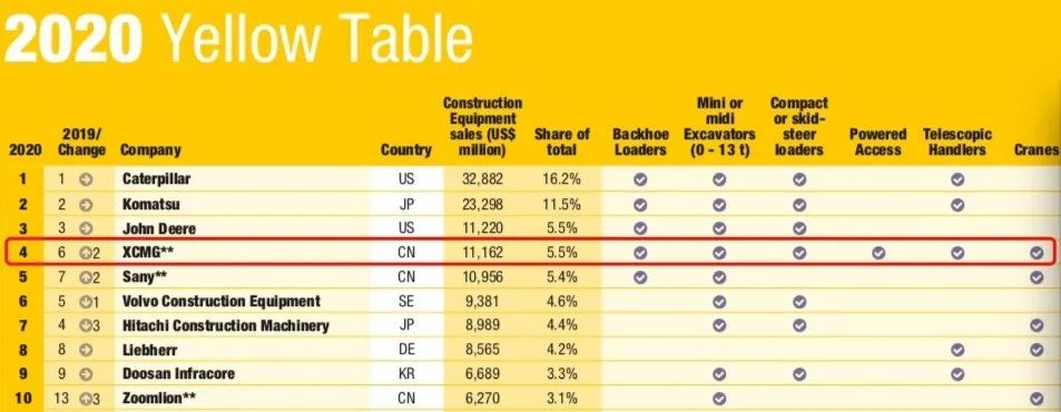实际上,“2020年跻身世界前五”的目标已经提前实现了。根据全球最具权威的工程机械信息提供商英国KHL集团发布的“2020年全球工程机械制造商50强排行榜(2020Yellow Table)”,徐工世界排名已由2019年的第六位跃升至2020年的第四位。