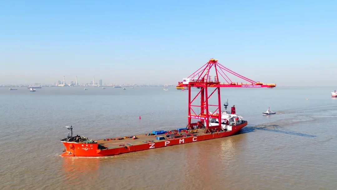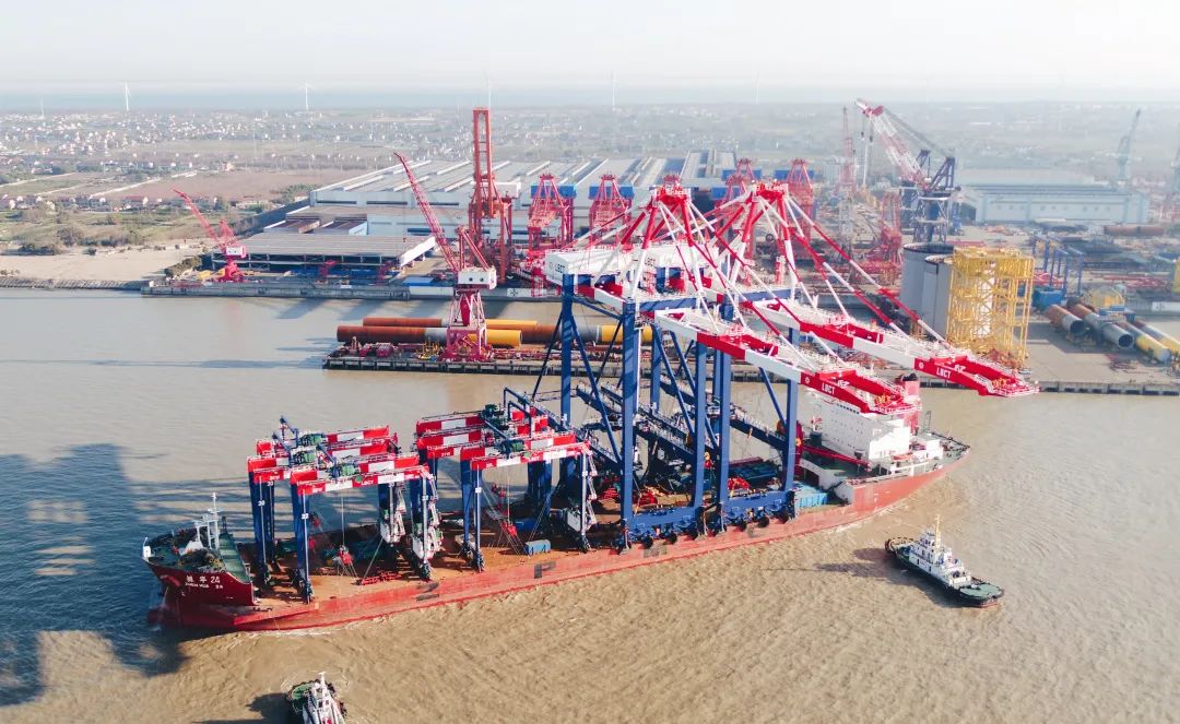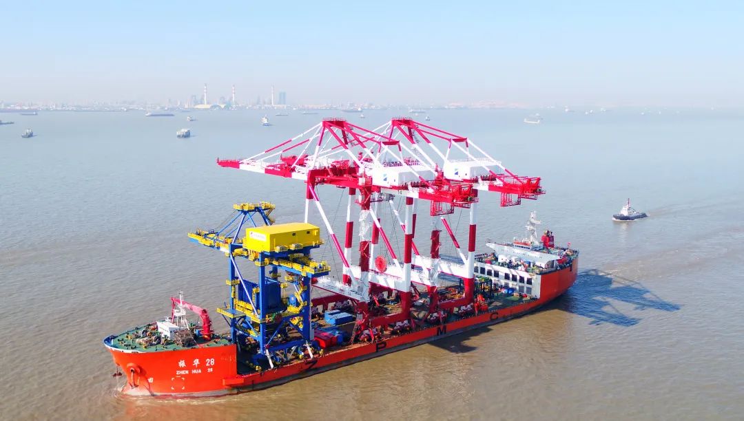 2月21日清晨,长兴基地码头一片热火朝天,3艘振华运输船装载着港机设备启程前往西班牙巴塞罗那、美国长滩和中国宁波。