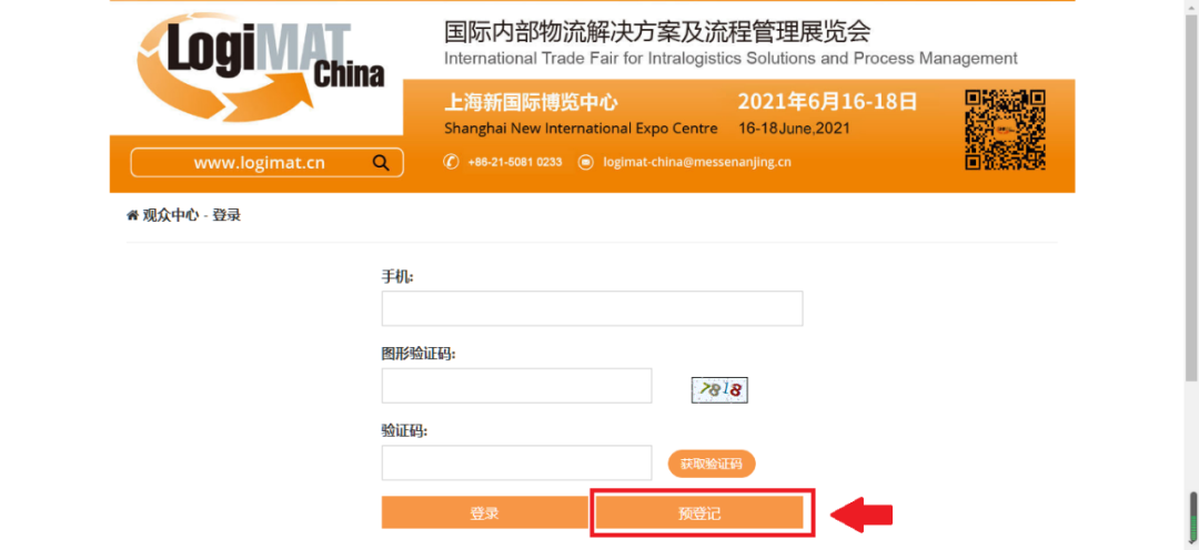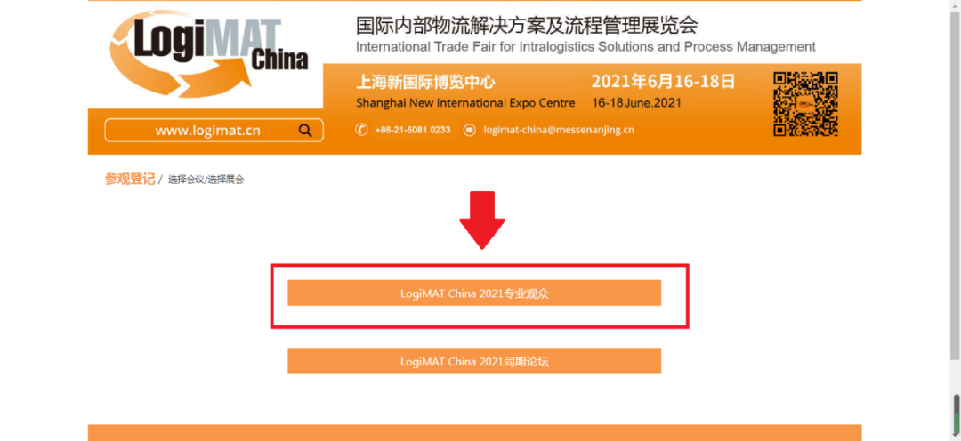 ③ 点击LogiMAT China 2021专业观众进入注册流程,若您只对同期论坛感兴趣可点击“同期论坛”选项。