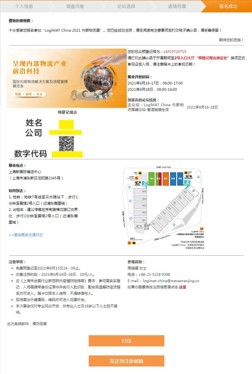 Step 5: 注册成功后将会出现您的个人信息及二维码,同时将收到短信通知与邮件。