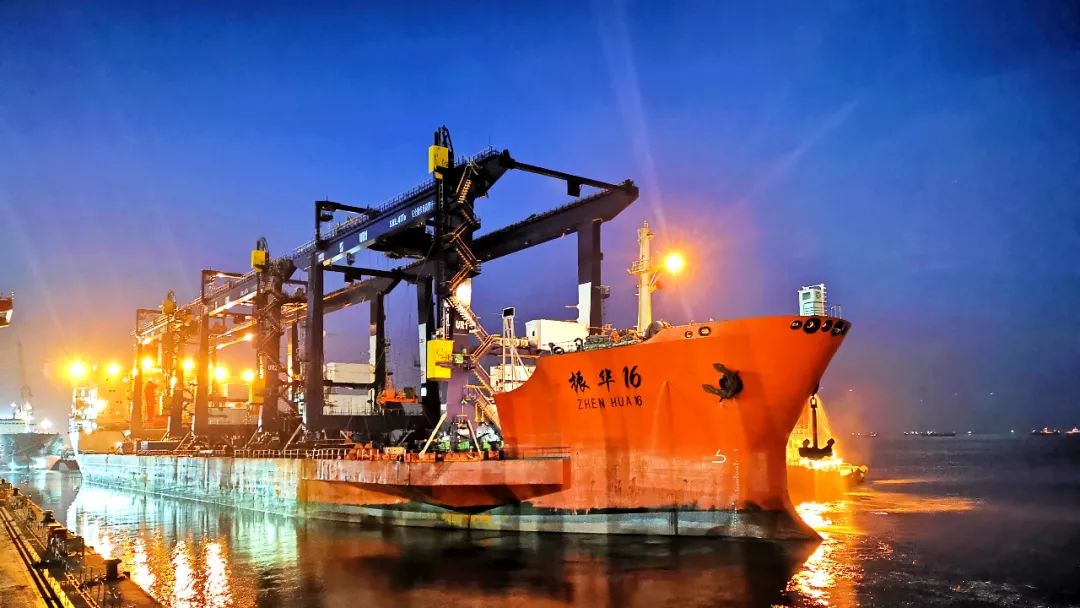 3月3日清晨,伴随嘹亮的汽笛声,装载着3台自动化轨道吊的“振华16”轮缓缓驶离南通分公司码头,前往和黄集团香港HIT码头。