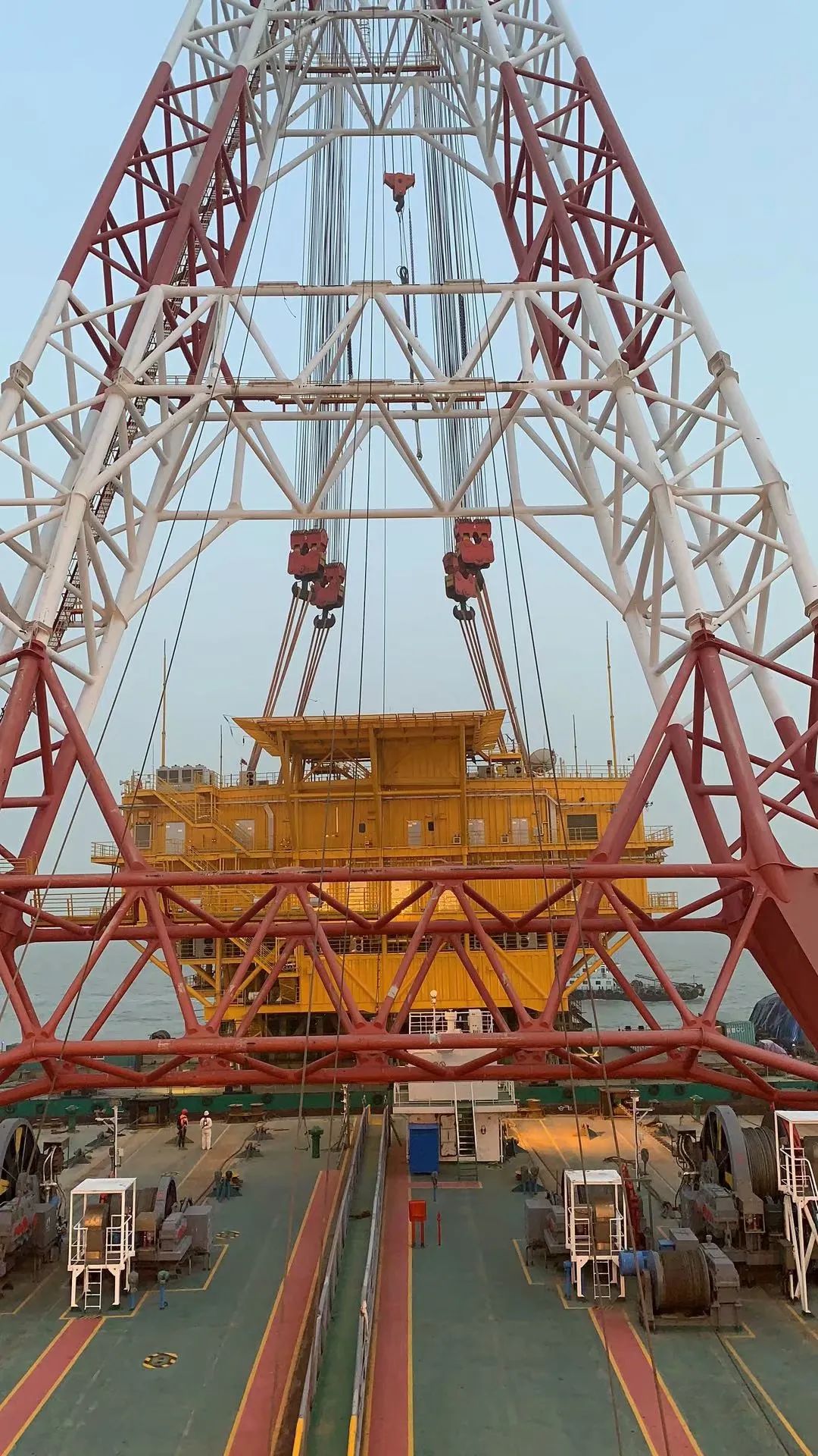 全体船员和项目组人员密切配合,时刻关注气象、海况,综合现场资源,成功完成江苏如东H4#、H7#海上升压站上部组块吊装任务,创下三天两吊最新纪录。