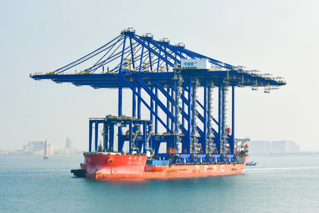 3月31日,海南洋浦小铲滩集装箱码头4台岸桥及3台轮胎吊搭载“振华32”轮顺利到港。这是洋浦小铲滩集装箱码头首次采购公司港机设备。