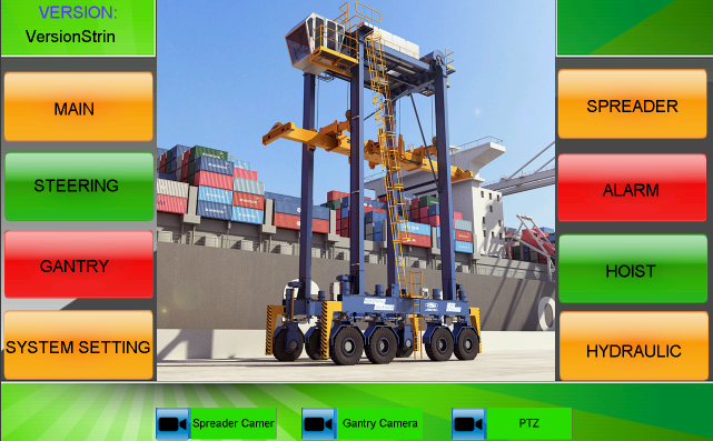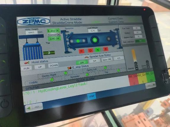 该软件能够详细显示跨运车各执行机构动态信息,让坐在司机室内的操作人员完全监控到跨运车实时动态和车辆周围状态,帮助操作人员及时准确地对异常工况做出判断并处理。