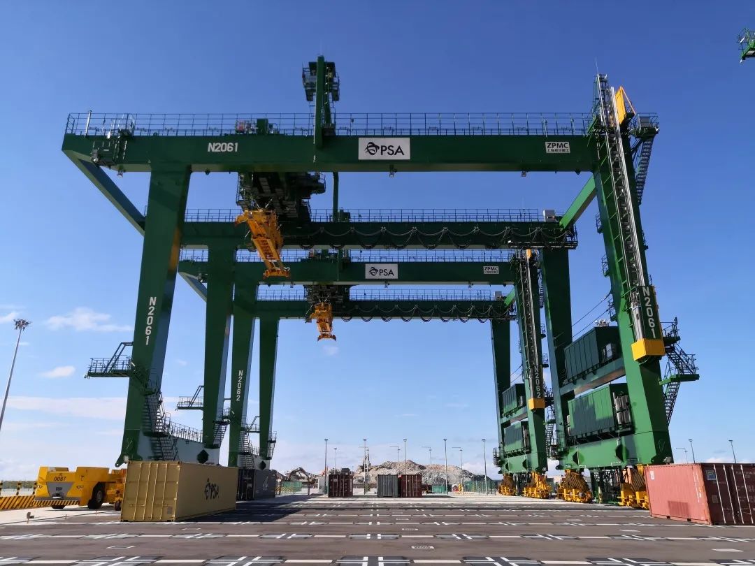 近日,振华重工承建的新加坡PSA大士(Tuas)自动化码头项目交机现场传来新进度:首批2台双小车自动化岸桥和2台自动化轨道吊完成交付。同时,“振华25”轮装载的第五批6台自动化轨道吊也顺利运抵码头现场。