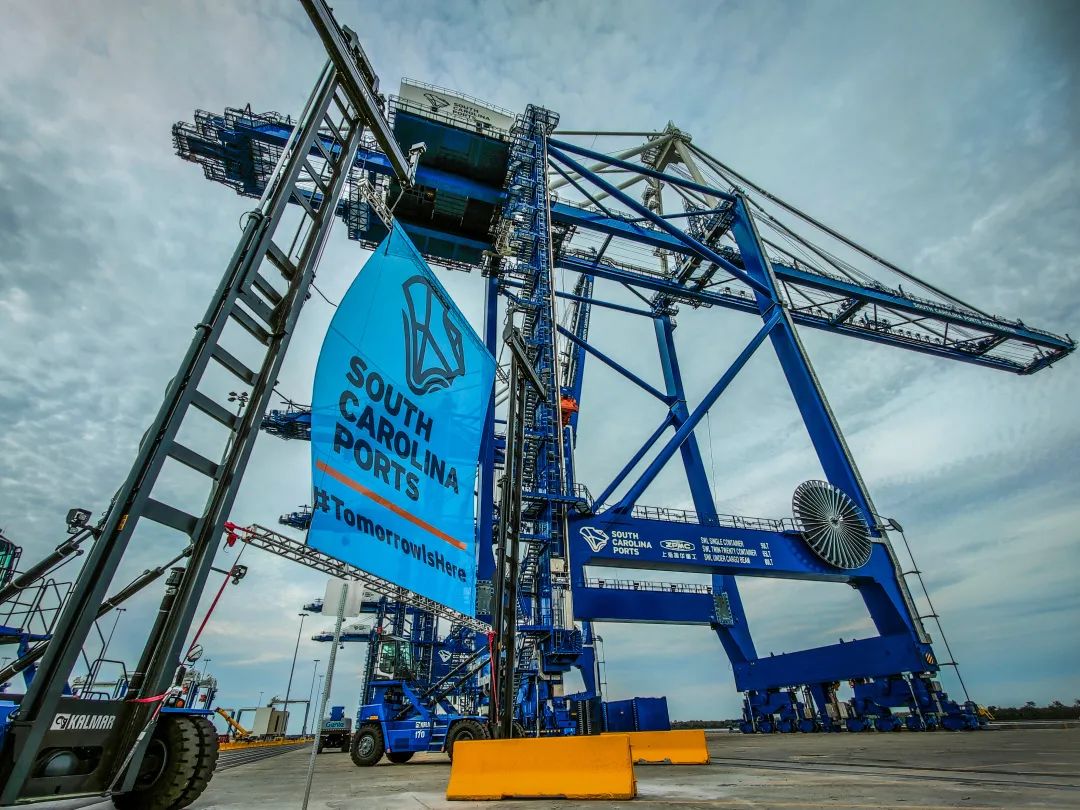 该码头位于查尔斯顿港,振华重工为一期工程提供5台岸桥和25台混动轮胎吊,其中岸桥起升高度51.5米、前伸距近70米,可接卸处理20000标准箱大型船只。