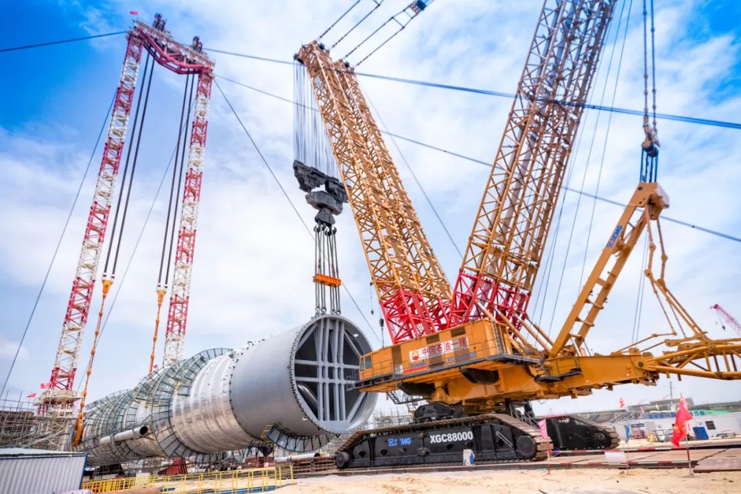 据了解,为配合此次亚洲最大4000吨级抽余液塔吊装,作业前,这台徐工XGC88000三号机多次成功完成了4500吨的极限超载测试准备。强大的起重能力与可靠的稳定性,也确保了本次吊装的成功实施。