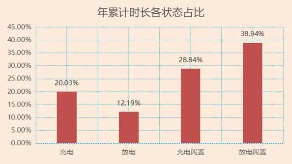 (3)电池在充电、放电、充电闲置和放电闲置状态的使用时间占比分别为:20.03%、12.19%、28.84%和38.94%。