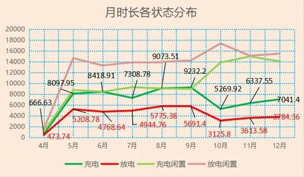 4、各月充电、放电、充电闲置和放电闲置时长情况: