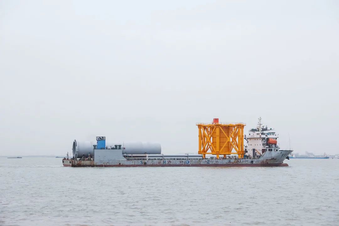5月18日,大唐福建平潭42米桩腿嵌岩平台(稳桩平台)项目完成装船,这座总重约1500吨、高42米的稳桩平台缓缓离开南通振华重装码头,前往福建平潭风场大展拳脚。