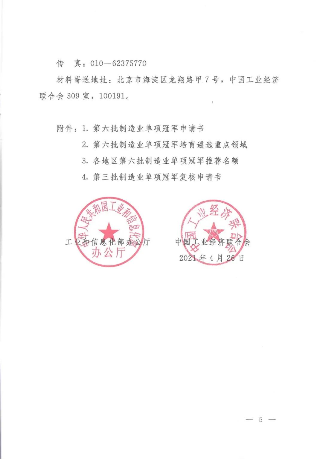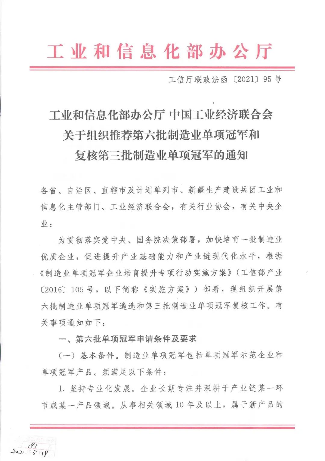 关于组织推荐第六批制造业单项冠军和复核第三批制造业单项冠军的通知