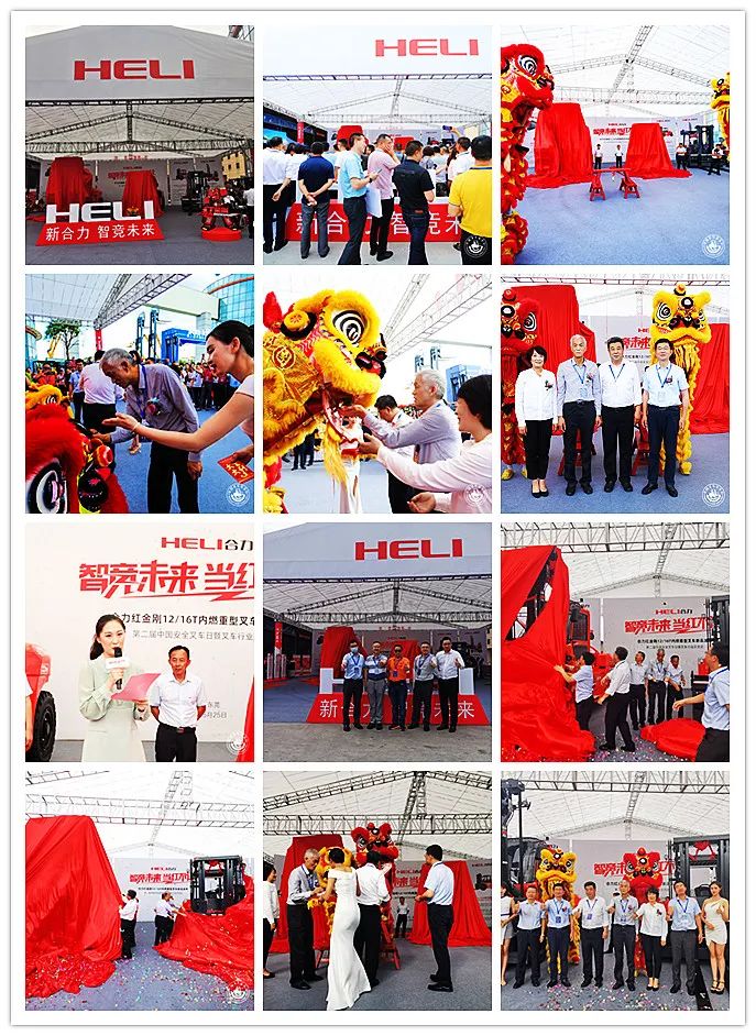 下午5点,参会的行业领导和嘉宾移步到合力产品展区,共同见证合力红金刚12/16吨内燃平衡重叉车新品发布会。