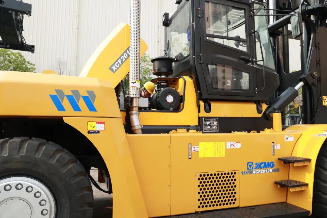 一系列调试动作完成后徐工XCF2012K顺利下线徐工港口机械大军再添一员猛将也预示着重型叉车产品线实现了跨越式发展