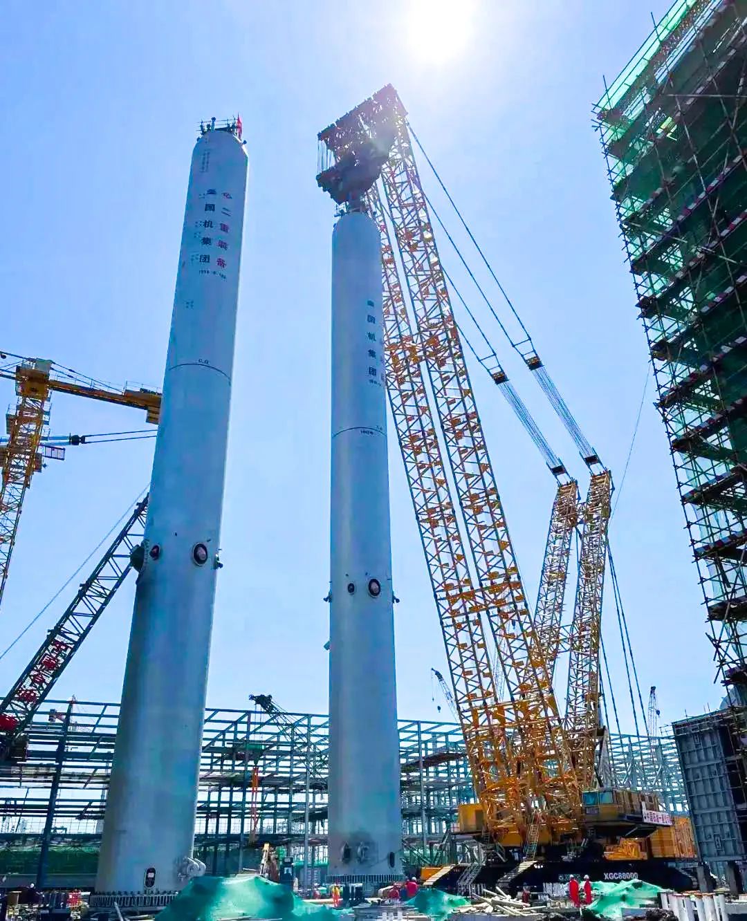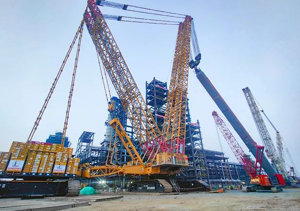 上个月,4606吨亚洲最重单体塔器抽余液塔在广东石化项目现场成功就位,“世界第一吊”徐工XGC88000与世界最大MYQ5000吨门式起重机合作刷新亚洲纪录。5月,这台徐工“超级巨无霸”依旧保持连续高效运行。