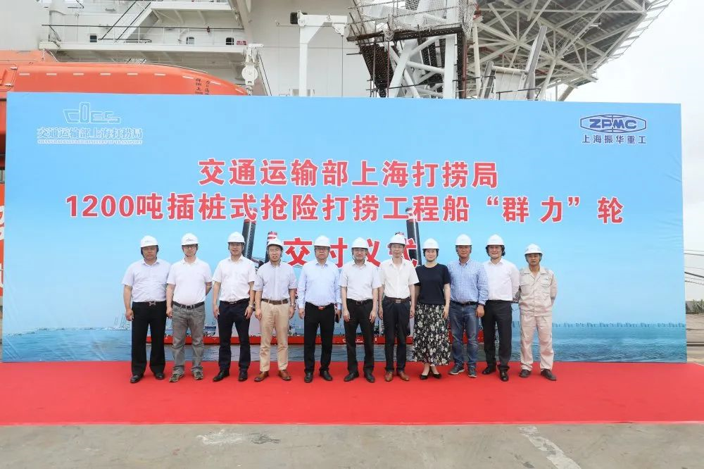 6月9日,振华重工为上海打捞局建造的1200吨插桩式抢险打捞工程船“群力”轮交付仪式在启东海工顺利举行。上海打捞局、中国船级社(CCS)、南通海事局、振华重工相关代表出席仪式,并签署完工四方见证的相关文件。