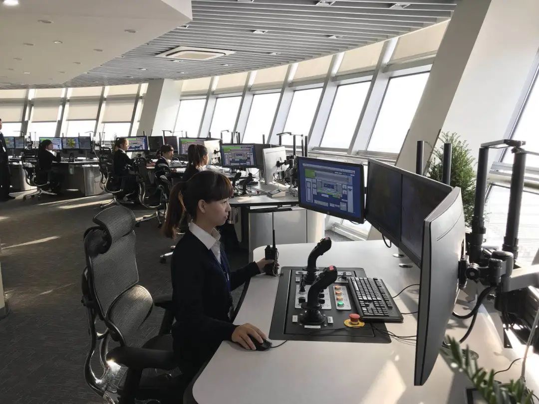 AGV根据地面磁钉引导,正有条不紊地驶向堆场箱区,进入指定位置。中控室内,随着操作杆被轻轻往下一扳,箱区上的轨道吊就“听话”地把集装箱抓取放置到指定位置。平稳放置的那一刻,中控室内掌声骤起。