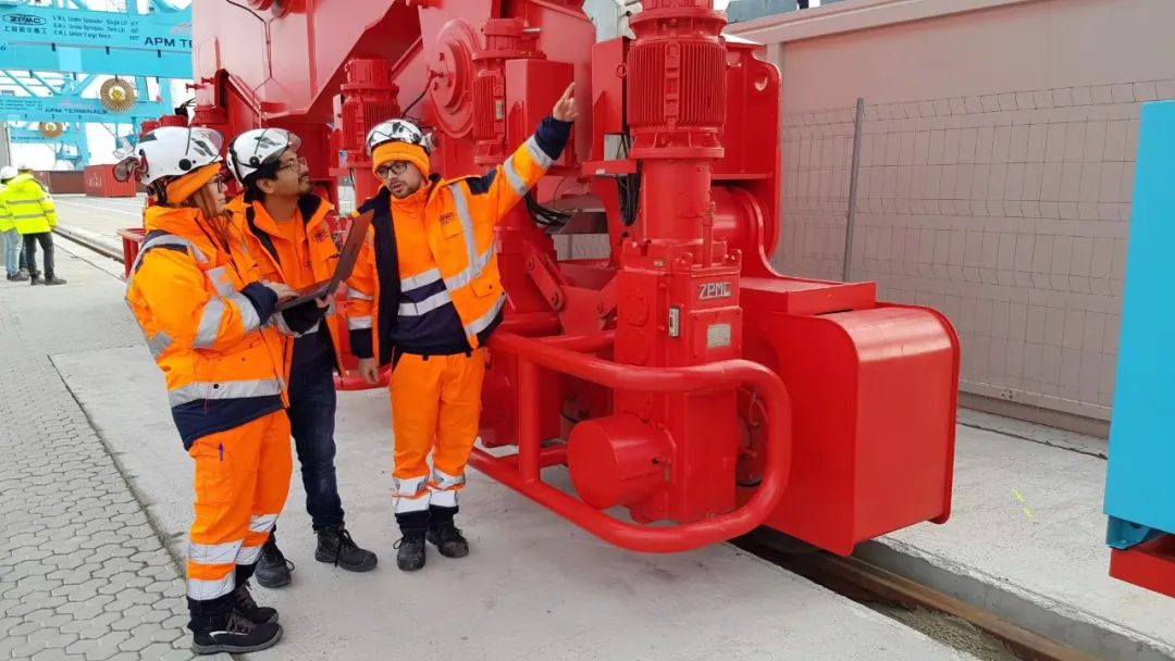 “你们先调别的部分,不能耽误进度,我去跟用户沟通,总得商量出一个可行的方案。”负责现场协调工作的项目总经理助理缪友春说道。经过反复沟通,双方的律师团队最终根据欧洲的安全规范出具了一份安全协议,规定了调试内容,同时设立安全专员负责地面协调,全方位保障跨运车驾驶员在调试期间的安全。这次经历让现场团队深刻感受到欧洲项目对于安全的高度重视,也促使调试团队开始转变思维,在后续的调试中新增了安全控制模块,为维保人员出入堆场进行设备维护提供了安全“保护伞”。