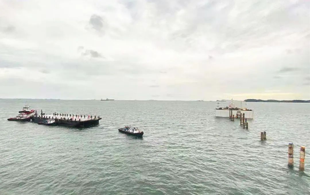 7月4日,“振华34”轮在新加坡成功浮装7艘工程船。